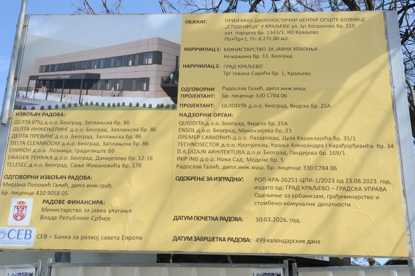 Овај капитални пројекат, за који је држава издвојила 1.340.000.000 динара без ПДВ-а, требало би да олакша рад 1.300 запослених и лечење око 350.000 људи који гравитирају краљевачкој Општој болници – истакао је министар Дарко Глишић.